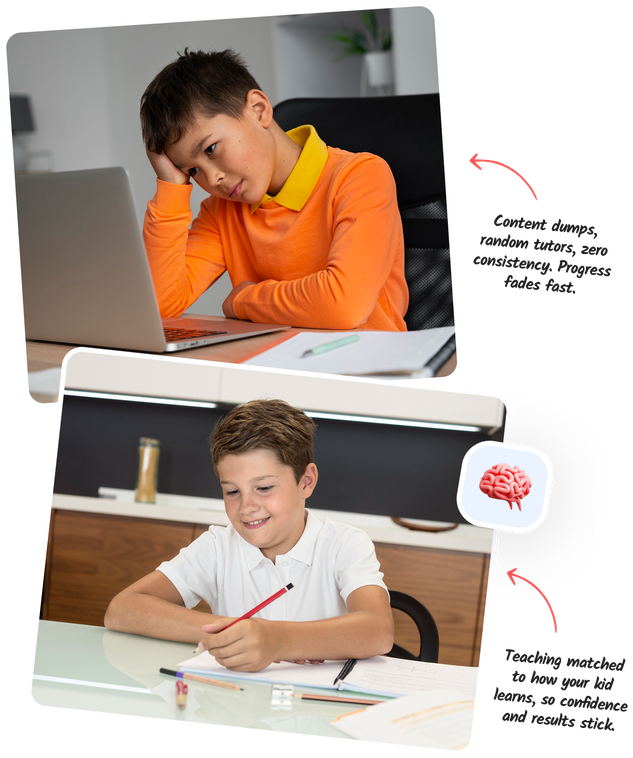 The truth is, none of these solutions failed because your child can’t learn, they failed because they were solving the wrong problem. School programs, online apps, and casual tutors all focus on content, worksheets, and revision,... not on HOW your child learns or connects. When the teaching style or personality doesn’t suit your child, they switch off. Their confidence drops, and the little progress they make never really sticks.